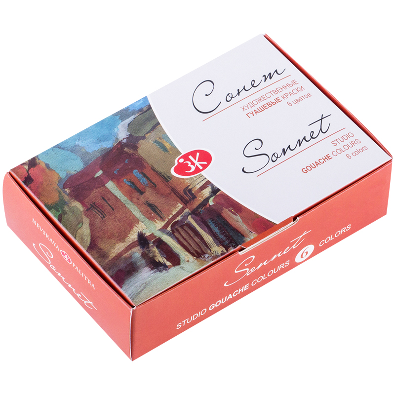 Гуашь художественная Сонет, 12 цветов, 20мл, картон (36411571)описаниеХудожественные гуашевые краски «Сонет» предназначены для создания учебных работ, макетов, декора и иллюстраций. Краски изготовлены по новой технологии с применением пигментных паст и синтетического связующего. Обладают высокой укрывистостью. После высыхания приобретают бархатистую матовую поверхность. Палитра гуашевых красок в наборе «Сонет» состоит из 12 основных цветов, необходимых начинающему художнику для работы.