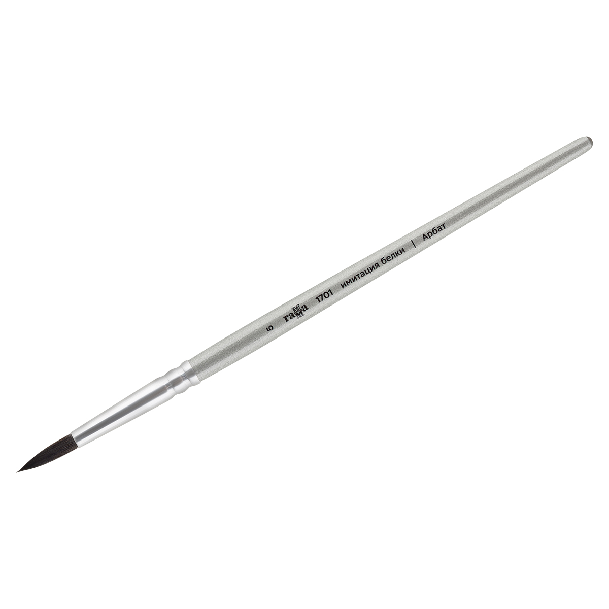 Кисть художественная синтетика имитация белки Гамма Арбат , круглая №6, короткая ручка (1701006)описаниеХудожественные кисти ГАММА серии «Арбат» – отличный инструмент для работы акварельными, гуашевыми и акриловыми красками. Кисть круглой формы № 6 с короткой сияющей серебряной ручкой из берёзы, покрытой глянцевым лаком. Диаметр – 6 мм, а выставка, длина волоса от обоймы до кончика кисти, составляет 23 мм.