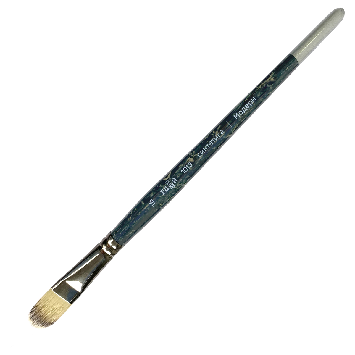Кисть художественная синтетика Гамма Модерн , веерная №10, короткая ручка (1008010)описаниеХудожественные кисти ГАММА серии «Модерн» – одни из первых художественных кистей бренда и хорошо знакомы художникам. Кисть веерной формы № 10 с короткой ручкой из дерева с эффектом мрамора и цельнотянутой латунной обоймой. Выставка, длина волоса от обоймы до кончика кисти составляет 28 мм.