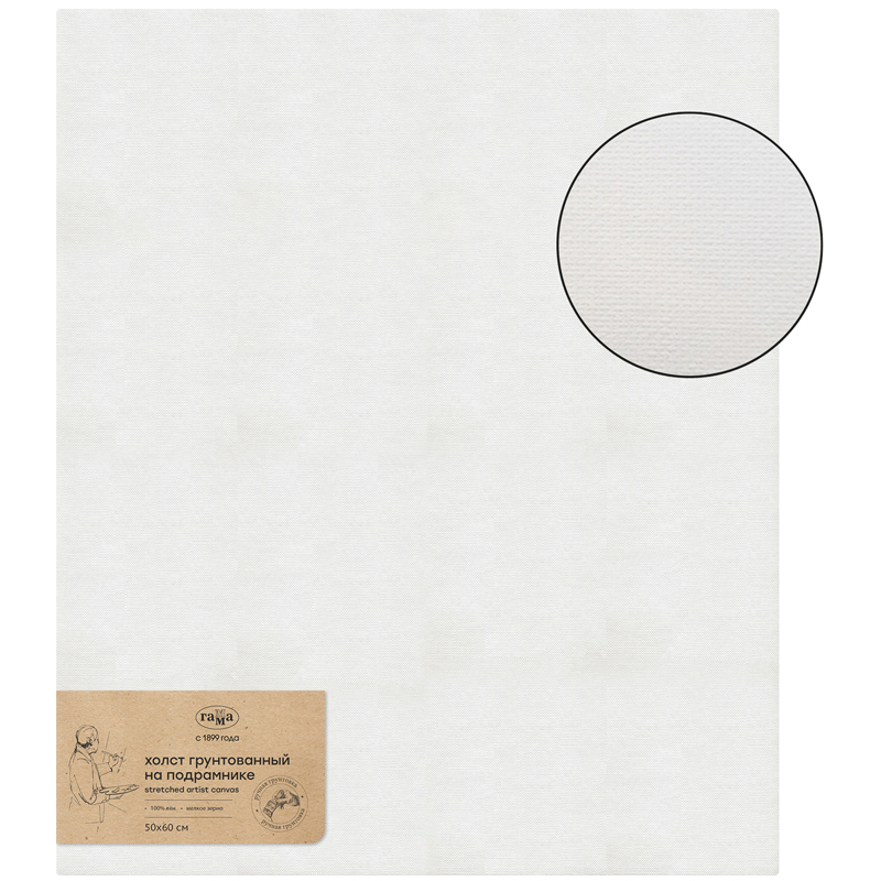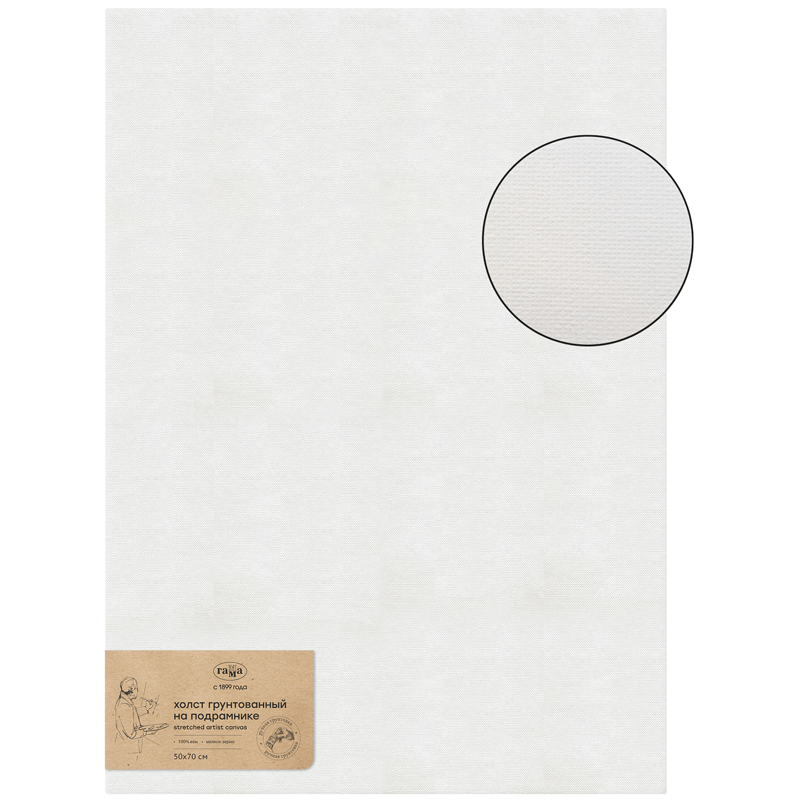 Холст на подрамнике Гамма Старый мастер , 50*70см, 100% лен, мелкое зерно, масляный грунт, ручная грунтовка (2311215070)описаниеХолст на подрамнике «ГАММА» серии «Старый мастер» выполнен из натурального полотна – 100% лён, мелкое зерно, акриловая грунтовка. Изделие имеет прямоугольную форму 50*70 см. Высококачественное льняное полотно по традиционной технологии вручную натягивают на сосновый подрамник с буртиком. Перед грунтовкой (акрил) ткань проходит специальную обработку и проверку для обеспечения ровной поверхности готового холста.