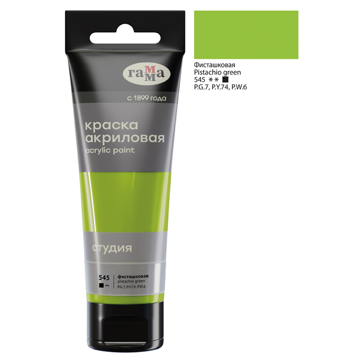 Краска акриловая художественная Гамма Студия , 75мл, пластиковая туба, фисташковая (280220545)