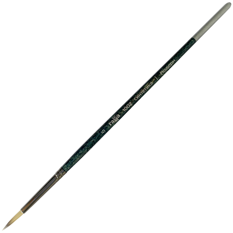 Художественные кисти ГАММА серии «Модерн» – одни из первых художественных кистей бренда и хорошо знакомы художникам. Кисть круглой формы № 5 с короткой ручкой из дерева с эффектом мрамора и цельнотянутой латунной обоймой. Диаметр – 3, 3 мм, а выставка, длина волоса от обоймы до кончика кисти составляет 16, 5 мм.