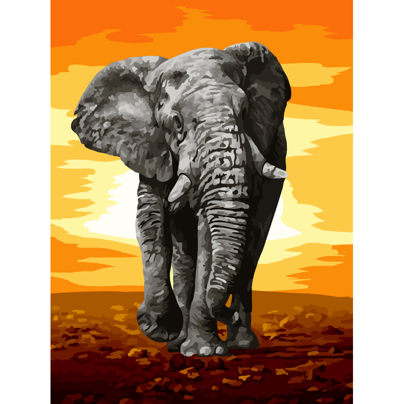 Создание картин по номерам на холсте «ТРИ СОВЫ» – это увлекательное хобби, которое будет интересно детям и взрослым. В результате получится изображение величественного слона на закате.