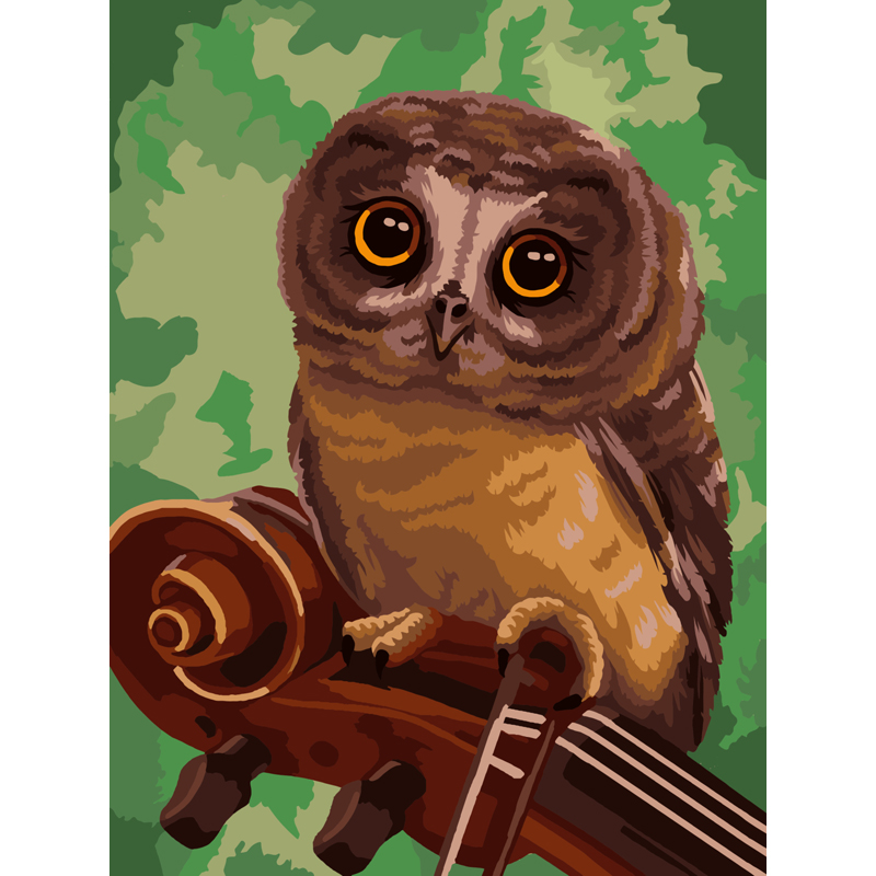 Создание картин по номерам на холсте «ТРИ СОВЫ» – это увлекательное хобби, которое будет интересно детям и взрослым. В результате получится изображение совы, сидящей на музыкальном инструменте.