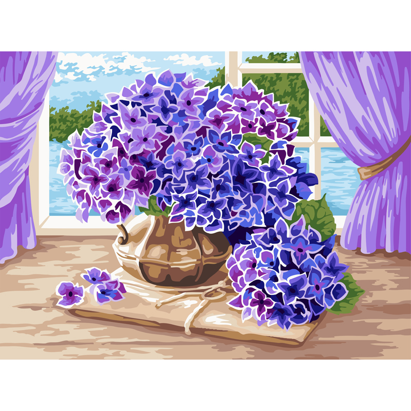 «ТРИ СОВЫ» ? время с пользой! Купите товар «Картина по номерам на холсте ТРИ СОВЫ Букет гортензий , 30*40, с акриловыми красками и кистями (КХ_44135)» по оптовой цене с доставкой или самовывозом.