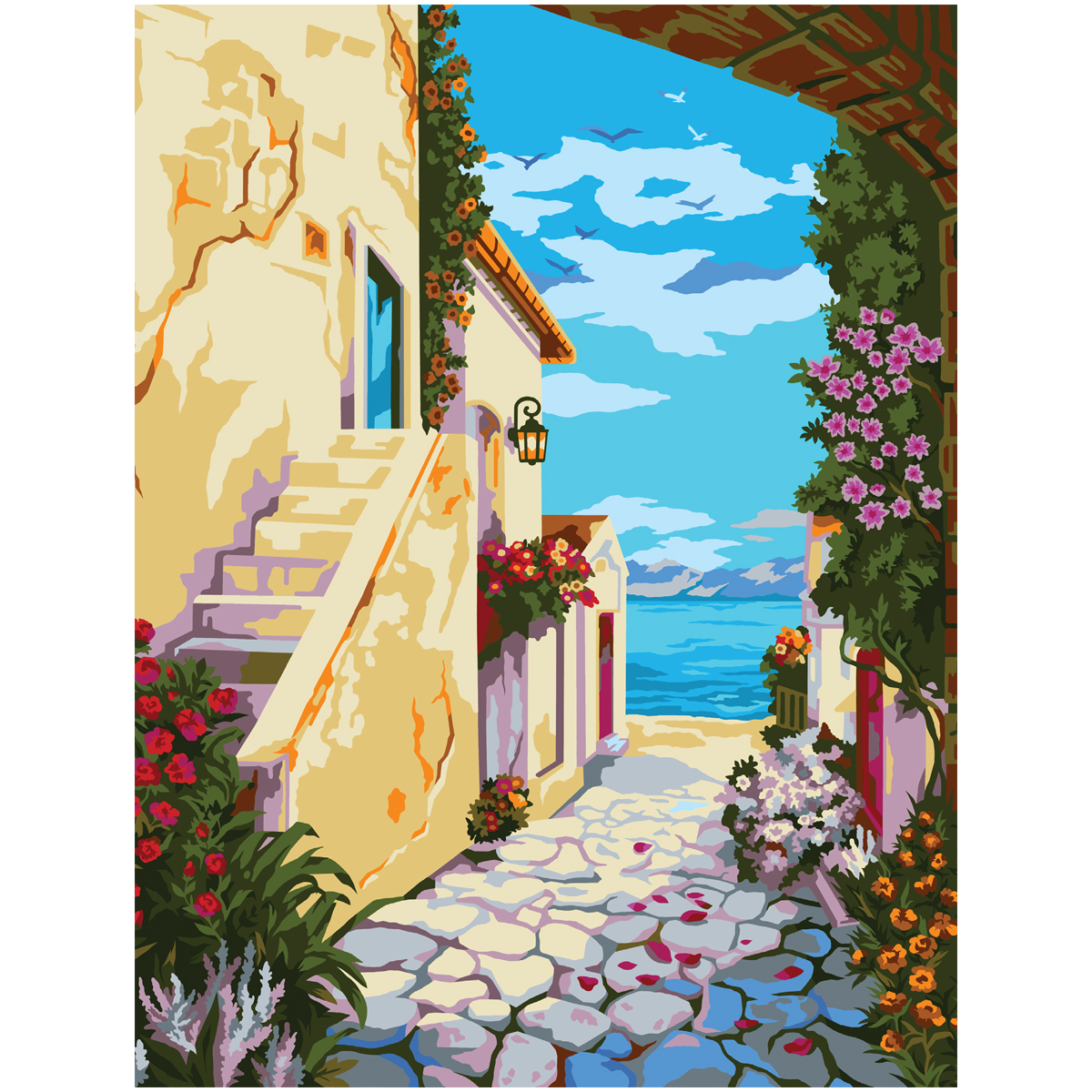 • крепления на стену. Купите товар «Картина по номерам на холсте ТРИ СОВЫ Улочка к морю , 40*50, с акриловыми красками и кистями (КХ4050_53898)» по оптовой цене с доставкой или самовывозом.