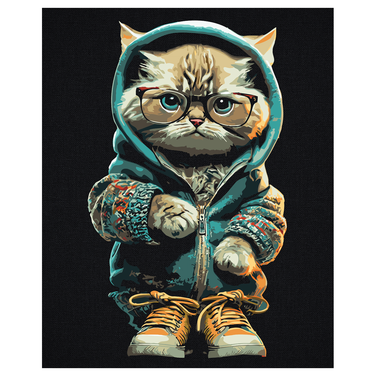 Картина по номерам на черном холсте ТРИ СОВЫ Стильный кот , 40*50, c акриловыми красками и кистями (КХп_48163)