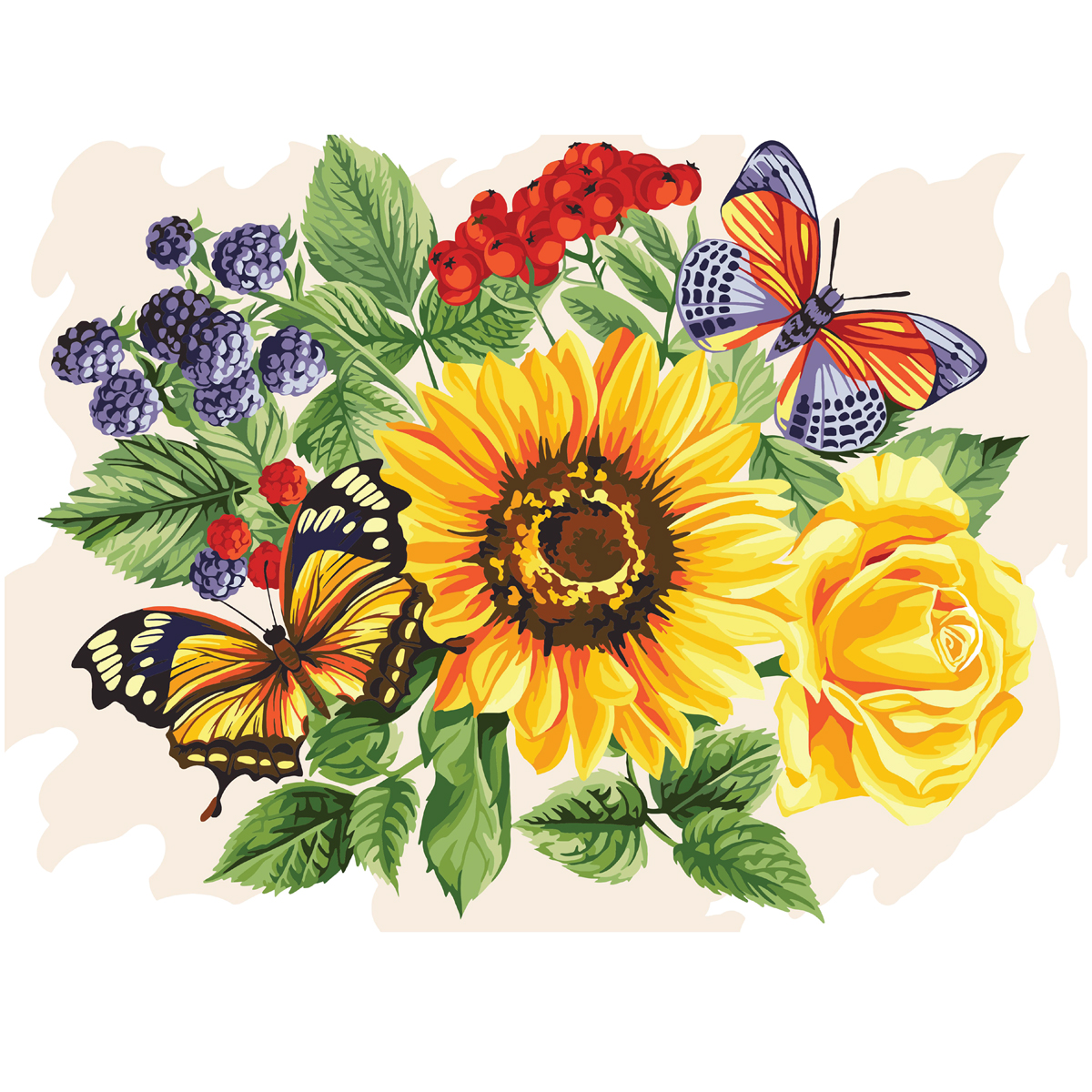 • Количество баночек с красками: 18. Купите товар «Картина по номерам на холсте ТРИ СОВЫ Подсолнухи и бабочки , 30*40, с акриловыми красками и кистями (КХ3040_53858)» по оптовой цене с доставкой или самовывозом.