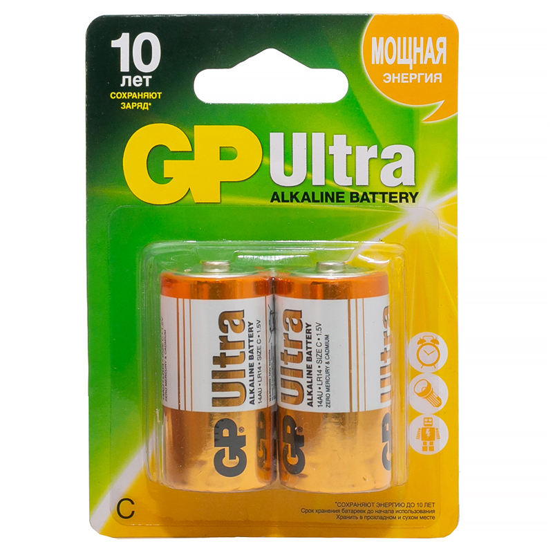 Батарейка GP Ultra C (LR14) 14A алкалиновая, BC2 (GP 14AU-2CR2)описаниеОсновные преимущества - Удобно использовать в аппаратуре с высоким энергопотреблением, требующей длительной работы от источников питания. Батареи эксплуатируются в мощных осветительных приборах, портативных электроинструментах, игрушках на радиоуправлении. Современный щелочной электролит на марганцево-цинковой основе имеет преимущество в стабильной энергоотдаче по сравнению с обычными солевыми аналогами. Широкий рабочий температурный диапазон позволяет использовать элементы питания GP повсемест ... [Подробнее на странице товара]Сумма заказа всех товаров с этого склада должна быть не менее 3000 р. Доставка от 4 дней