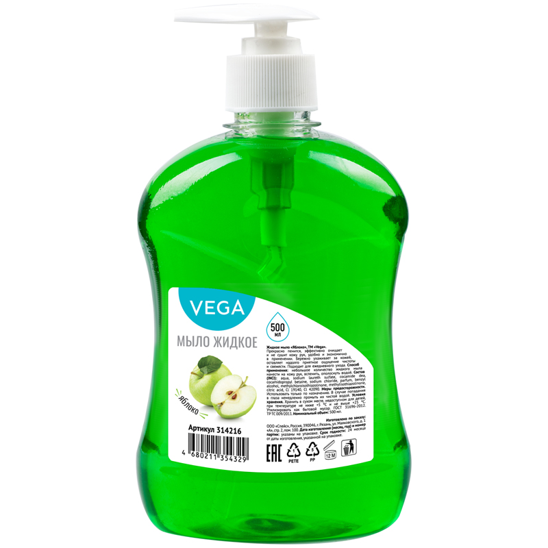 Мыло жидкое Vega Яблоко , дозатор, 500мл (314216)