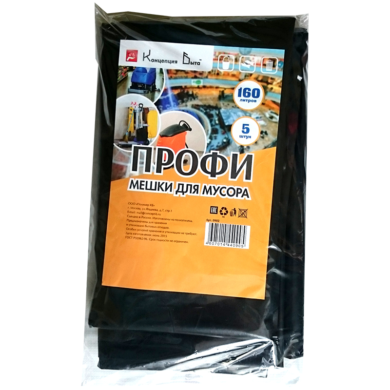 Серия мешков особой прочности с усиленным сварным швом и толщиной от 55 микрон. Серия профессиональных мешков разработана с учетом требований и пожеланий специалистов клиниговых, эксплуатационных организаций и прочих хозяйственных служб. Купите товар «Мешки для мусора 160л КБ Профи ПВД, 90*120см, 65мкм, 5шт., черные, в пластах (0902)» по оптовой цене с доставкой или самовывозом. Этот товар раскупают быстро. Успевайте! Товар производится под торговой маркой «Концепция Быта», что говорит о высоком качестве продукции.