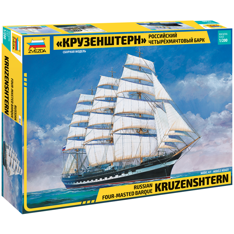 Модель для сборки ZVEZDA Российский барк Крузенштерн , масштаб 1:200 (9045)описаниеУчебное парусное судно «Крузеншт?рн» – четырёхмачтовый барк, названный в честь известного русского мореплавателя адмирала Ивана Фёдоровича Крузенштерна. Сегодня барк «Крузенштерн» принадлежит Балтийской государственной академии рыбопромыслового флота России и используется в учебных целях. Однако история этого судна начинается еще в 1926 году, когда, по давней традиции, дочь одного из судовладельцев, Эрика Ф. Лайеша дала ему название «Падуа» (“Padua”). Никто и предположить не мог, какая долгая и ... [Подробнее на странице товара]Сумма заказа всех товаров с этого склада должна быть не менее 3000 р. Доставка от 4 дней