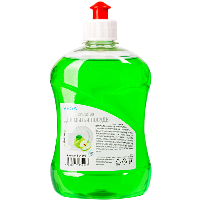 Средство для мытья посуды Vega Яблоко , пуш-пул, 500мл (314196)описаниеСредство для мытья посуды. Эффективно удаляет жир и загрязнения с посуды. Состав: вода питьевая (30% и более), ПАВ менее 5%, хлорид натрия (менее 5%), консервант ( менее 5%), отдушка (менее 5%), краситель (менее 5%). Сумма заказа всех товаров с этого склада должна быть не менее 3000 р. Доставка от 4 дней