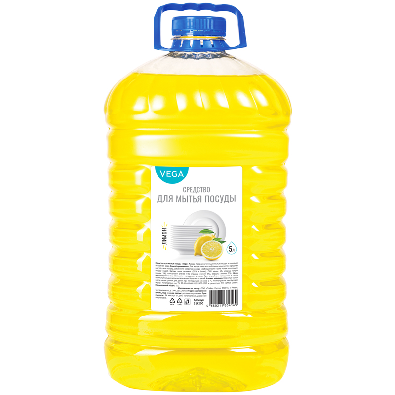 Средство для мытья посуды Vega Лимон , ПЭТ, 5л (314200)описаниеСредство для мытья посуды. Эффективно удаляет жир и загрязнения с посуды. Состав: вода питьевая (30% и более), ПАВ менее 5%, хлорид натрия (менее 5%), консервант ( менее 5%), отдушка (менее 5%), краситель (менее 5%). Сумма заказа всех товаров с этого склада должна быть не менее 3000 р. Доставка от 4 дней