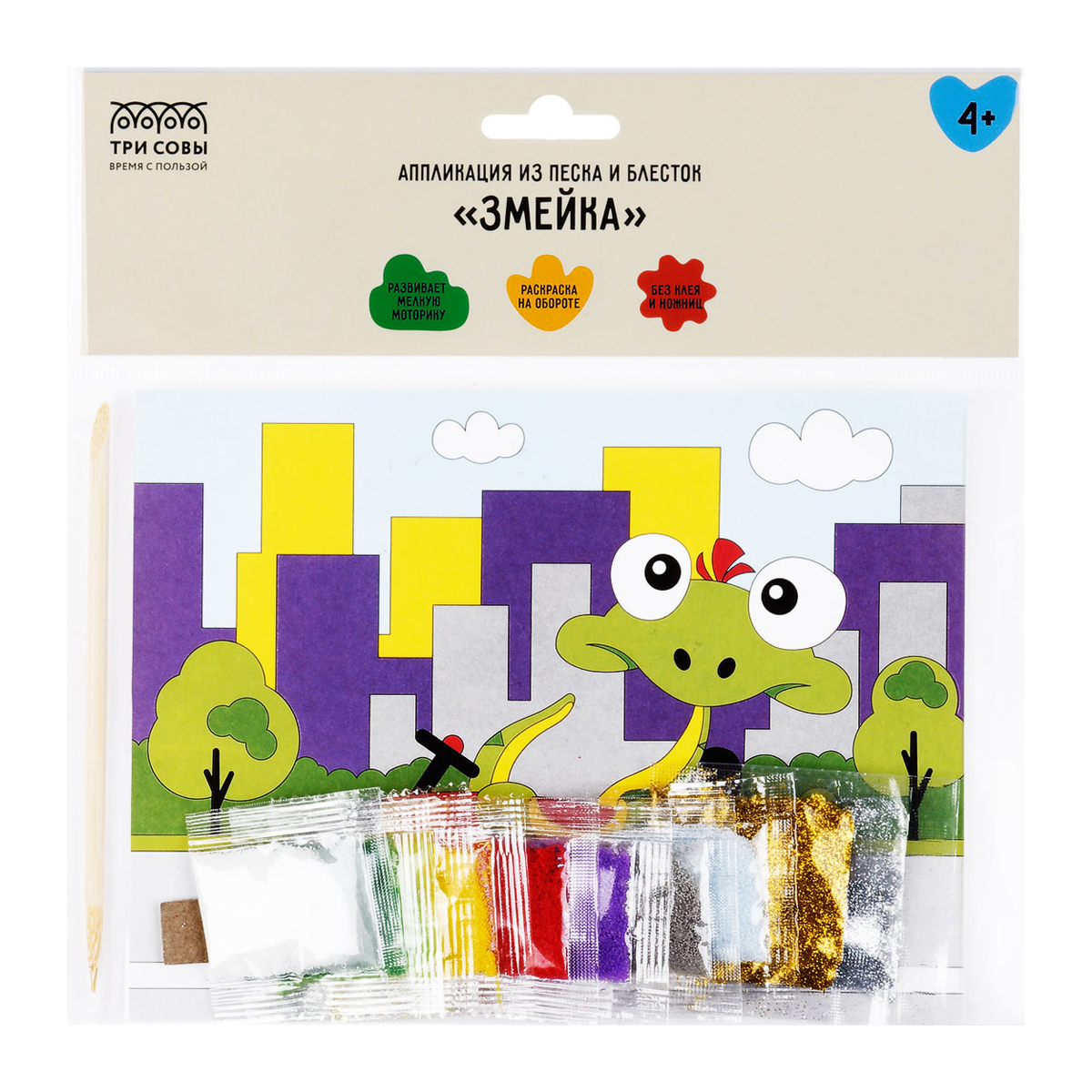 • Размер: 15*20 см. Купите товар «Аппликация из песка и блесток ТРИ СОВЫ Змейка , с раскраской, пакет с европодвесом (ФП_47826)» по оптовой цене с доставкой или самовывозом.