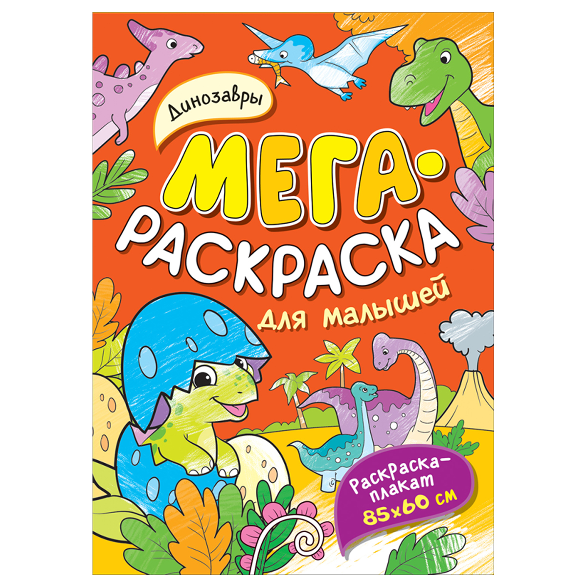 Раскраска А4 Росмэн Мегараскраска для малышей. Динозавры , 16стр. (40551)