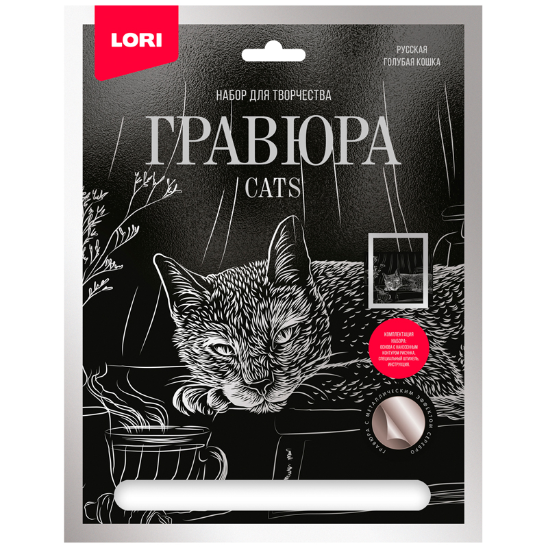 На гравюре изображена Русская голубая кошка. Эта кошка может растопить самое холодное сердце своей завораживающей красотой и дружелюбной натурой. Она известна своей мягкой темно-серой шерстью и темно-зелеными глазами. Готовую работу можно вставить в упаковку-рамку. Размер готовой гравюры 18*24см. Купите товар «Гравюра с эффектом серебра Lori Русская голубая кошка , 27,5*21,5см (Гр-671)» по оптовой цене с доставкой или самовывозом.