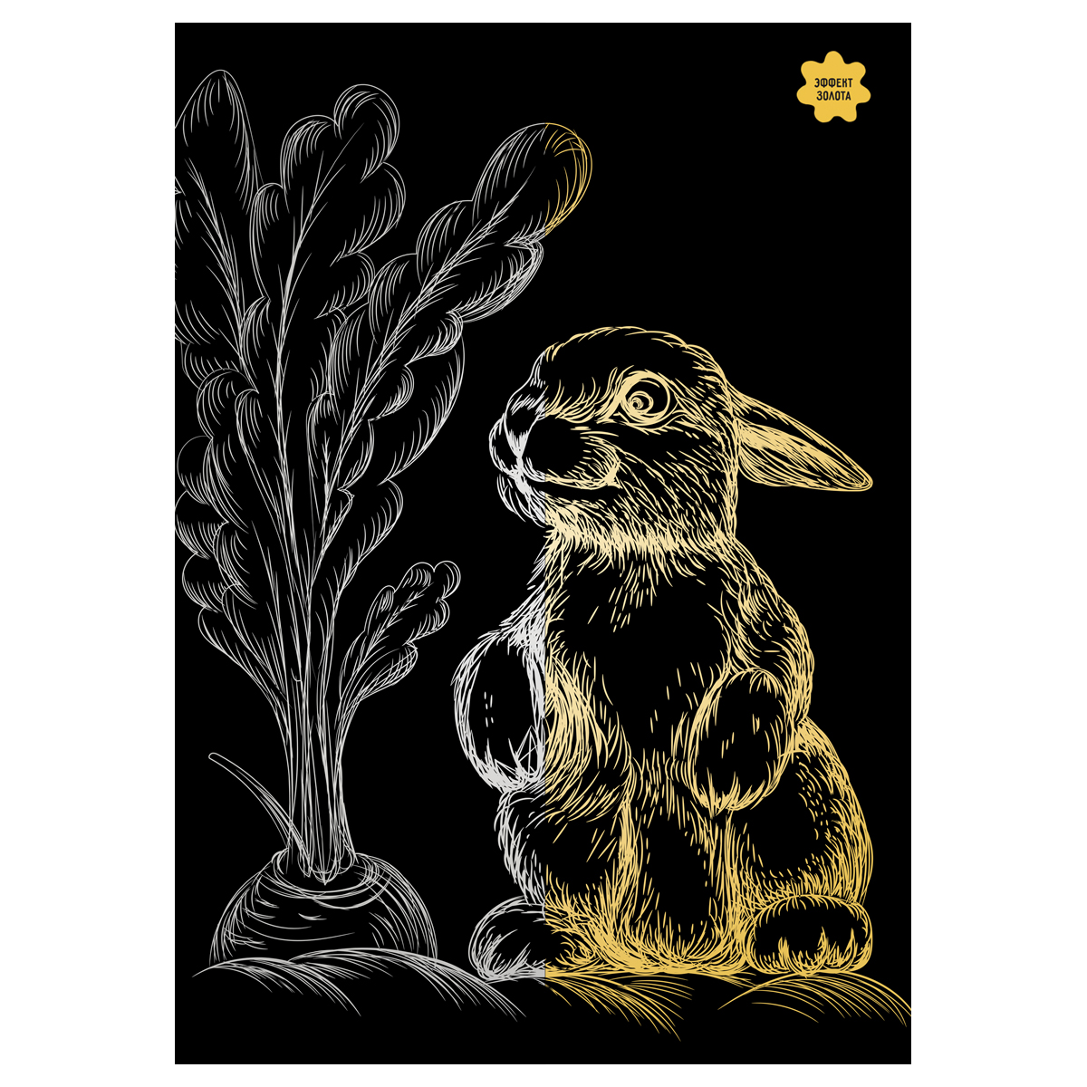 Гравюра с эффектом золота ТРИ СОВЫ Зайка , А4 (GA4_48272)
