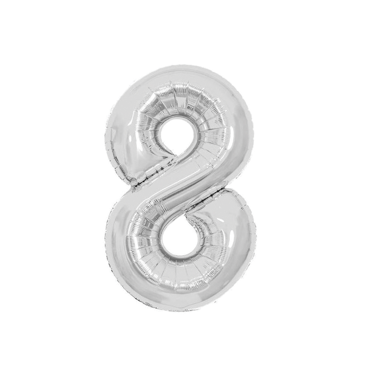 Воздушный шар, 40 , MESHU,  цифра 8, серебро, фольгированный (MS_51232) - фото товара
