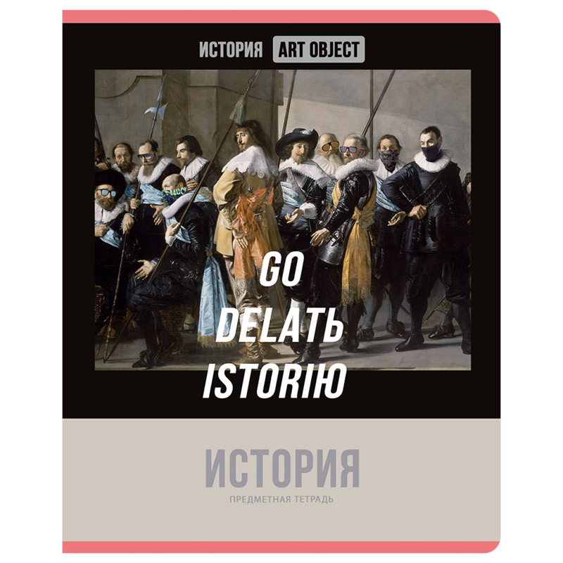 Тетрадь предметная BG «История» из серии Art object (в серии 12 предметов) со справочной информацией на форзацах. Формат тетради – А5, вид крепления – скрепка. Внутренний блок состоит из 48 листов офсетной бумаги плотностью 60 г/м2 и белизной блока 90-92%. Тип линовки – клетка с полями. Обложка выполнена из мелованного картона c рисунком и имеет удобные скруглённые углы. Стильный и современный дизайн серии понравится ценителям искусства с чувством юмора.