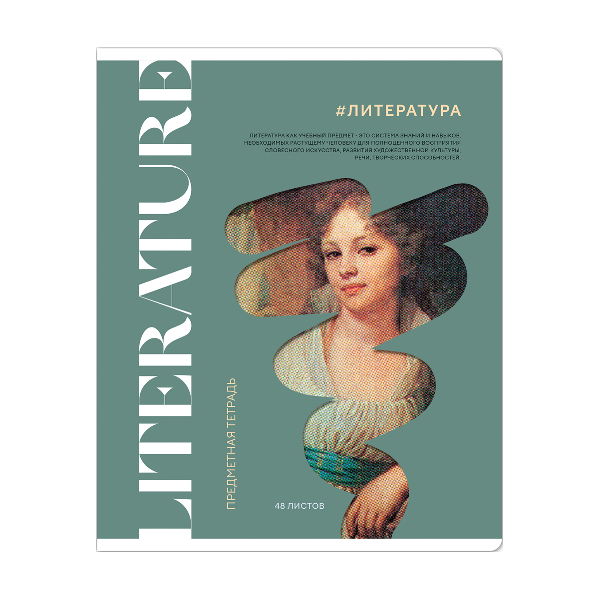 Тетрадь предметная «Литература» из серии «Коллаборация» (в серии 12 предметов), со справочным материалом на отдельных листах. Формат А5, размер – 165*205 мм. Вид крепления – скрепка. Внутренний блок состоит из 48 листов офсетной бумаги плотностью 65 г/м?. Белизна 100%, линовка – линия с полями. Обложка выполнена из целлюлозного картона с матовой ламинацией, выборочным УФ-лаком.