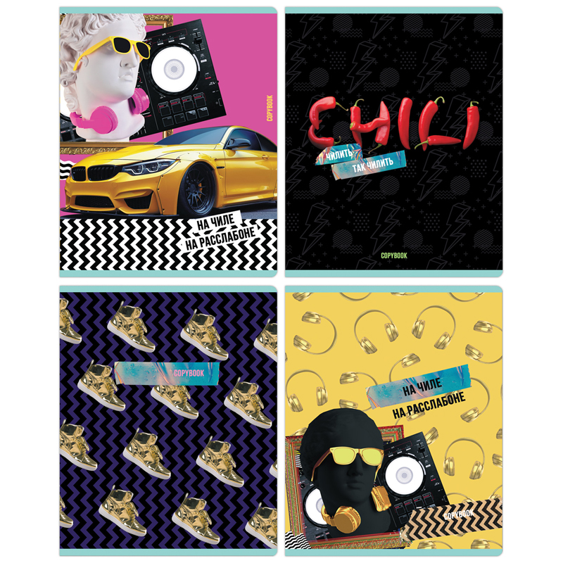 Тетради BG серии «На расслабоне» с креативным дизайном отлично подходят для выполнения классных и домашних работ. Внутренний блок тетради состоит из 48 листов в клетку формата A5 на офсетной бумаге плотностью 60 г/м?, белизна которой составляет 90%. Вид крепления – скрепка. Обложка выполнена из мелованного картона.