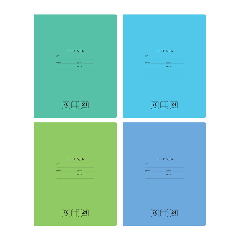 Школьная тетрадь BG серии «Отличная» формата А5 (165*205 мм) на скобе состоит из 24 листов и идеально подходит для письма шариковой, гелевой или капиллярной ручкой. Внутренний блок – офсетная бумага плотностью 70 г/м?, белизна – 100%, линовка – клетка с полями. Однотонная обложка тетради изготовлена из качественного мелованного картона. Сзади на обложке размещена таблица умножения. Обложка и внутренний блок имеют скругленные уголки. Тетради упакованы в термоусадочную пленку по 10 штук. В коробке цвета идут ассорти - в зеленых и голубых оттенках. В запайке идет 1 цвет.