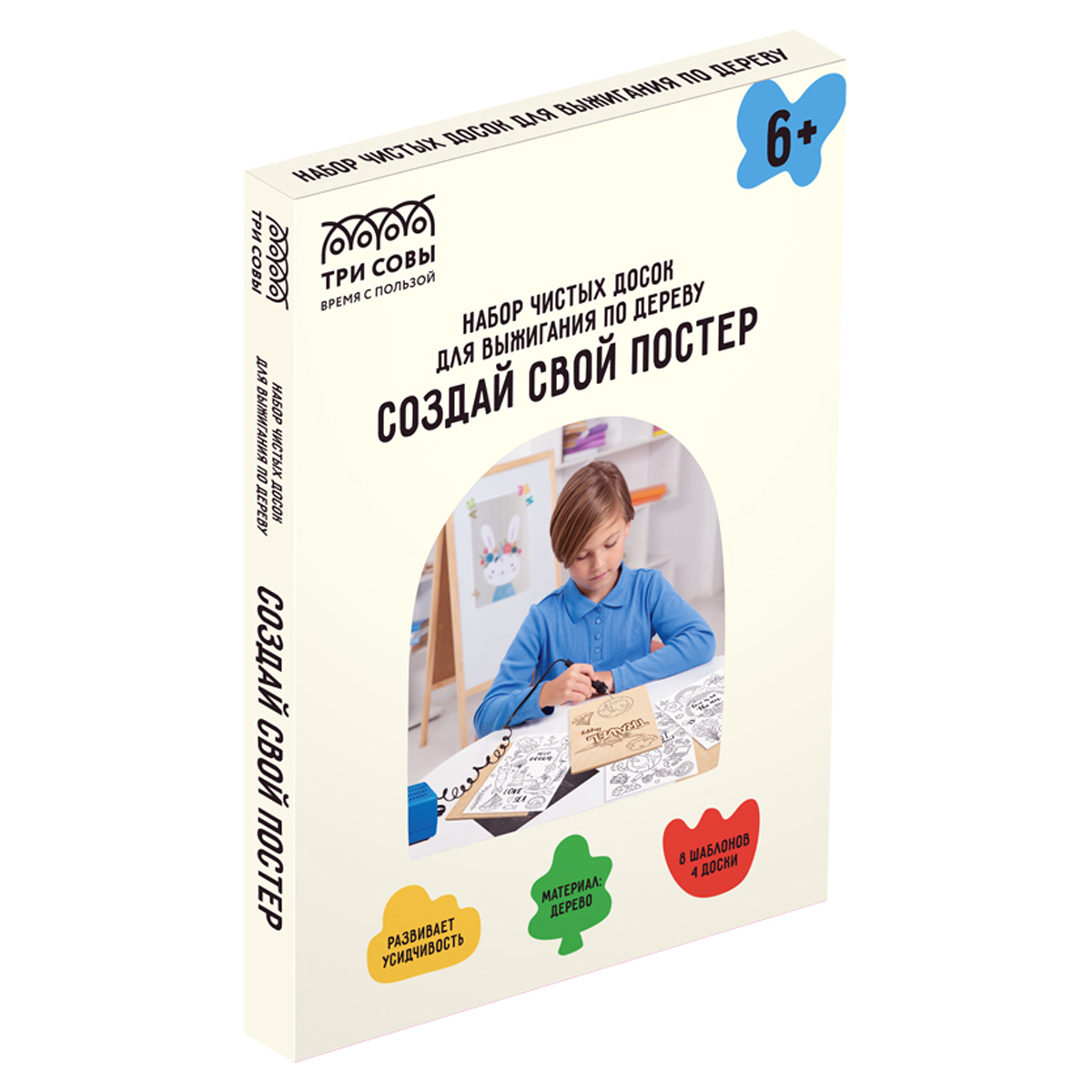 Набор чистых досок для выжигания по дереву ТРИ СОВЫ Создай свой постер! , 4шт., 15*21см, картонная коробка (НВ_48635)описаниеНабор «Создай свой постер!» поможет создать уникальную и оригинальную работу. В него входят 8 шаблонов с рисунками, рамками, поздравительными надписями.