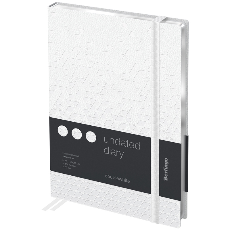 Ежедневник недатированный, А5, 136л., кожзам, Berlingo DoubleWhite , серебряный срез, с резинкой, белый, с рисунком (UD2_97501)