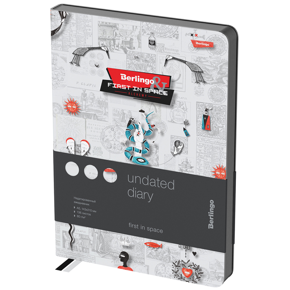 Ежедневник недатированный, А5, 136л., кожзам, Berlingo First in Space , черный срез, с рисунком (UD2_01001)