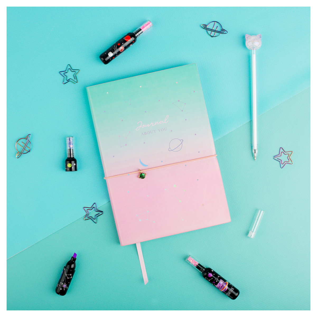 Ежедневник недатированный A5, 136л., кожзам, MESHU Space plans , тон. блок, резинка-фиксатор с подвеской, голографический срез, закладка-ляссе (MS_53624)