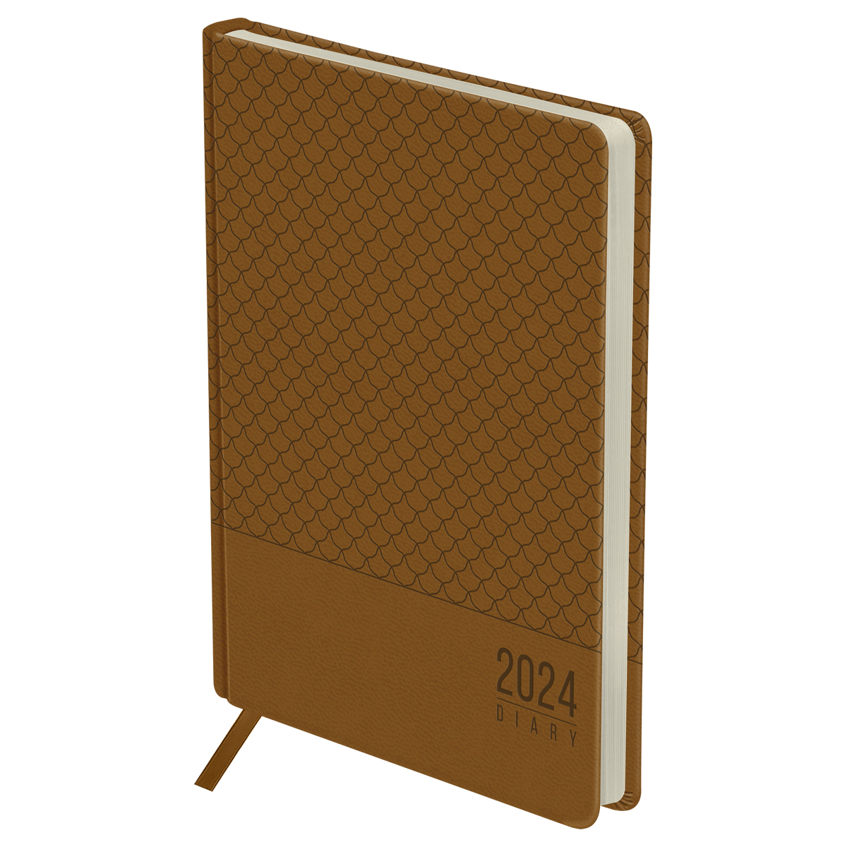 Стильный датированный ежедневник на 2024 год OfficeSpace формата А5 серии Pattern станет отличным помощником в планировании дел. Ежедневник имеет размер 145*205 мм. Внутренний блок – 176 листов офсетной белой бумаги плотностью 70 г/м2 с печатью в 2 краски. Твёрдая обложка с поролоновой прослойкой изготовлена из высококачественной экокожи бежевого цвета, имитирующей натуральную глянцевую кожу с блинтовым тиснением. На обложке есть печать года. Перфорированные скруглённые уголки и закладка-ляссе обеспечат комфорт и удобство при использовании ежедневника. Внутри есть полезный справочный материал. Датированный ежедневник подходит под персонализацию. Изделие упаковано в пакет.