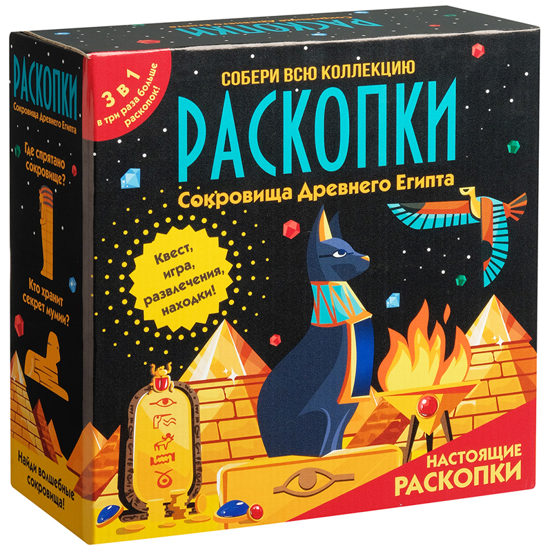 В наборе: буклет с заданиями, настольная игра, кубик, фишки, три бруска для раскопок, инструменты для раскопок, сундучок для сокровищ, диплом кладоискателя. Цвета находок в ассортименте. Купите товар «Набор для проведения раскопок Бумбарам с квестом 3в1 Раскопки в Древнем Египте (DIG-44)» по оптовой цене с доставкой или самовывозом.