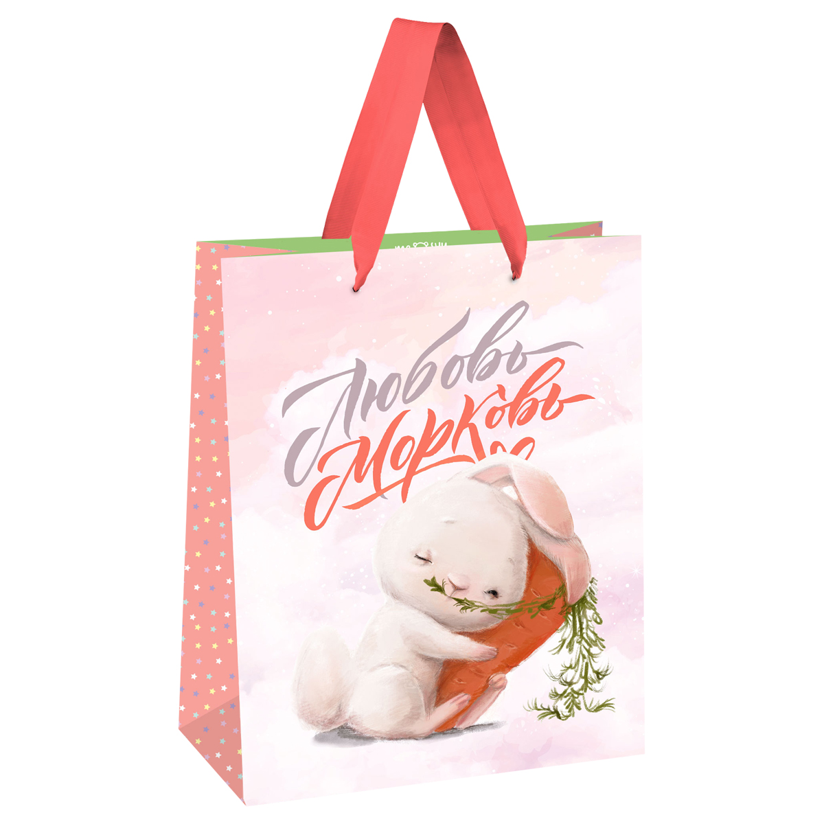 Пакет подарочный 18*23*10см MESHU Любовь-морковь , выборочный лак, матовая ламинация (MS_51837)