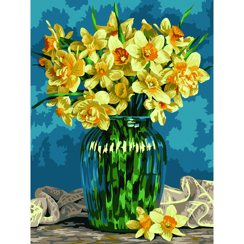 Краски обладают высокой плотностью, что позволяет перекрыть нанесенный контур в 1 слой. Технология точной разбивки сюжета картины на разные цветовые оттенки гарантируют правильность выполнения рисунка. Законченная работа с изображением букета нарциссов займет почетное место в интерьере или станет отличным подарком. Букет ярких пионов, изображенных на картине, непременно привлечет внимание.