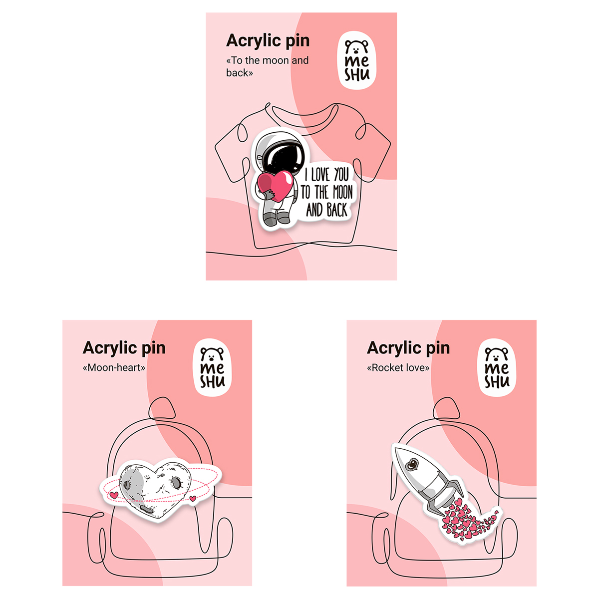 • Индивидуальная упаковка: пакет с европодвесом. Купите товар «Набор акриловых значков MESHU Space of love , прямая УФ-печать, 3шт. (MS_54865)» по оптовой цене с доставкой или самовывозом.