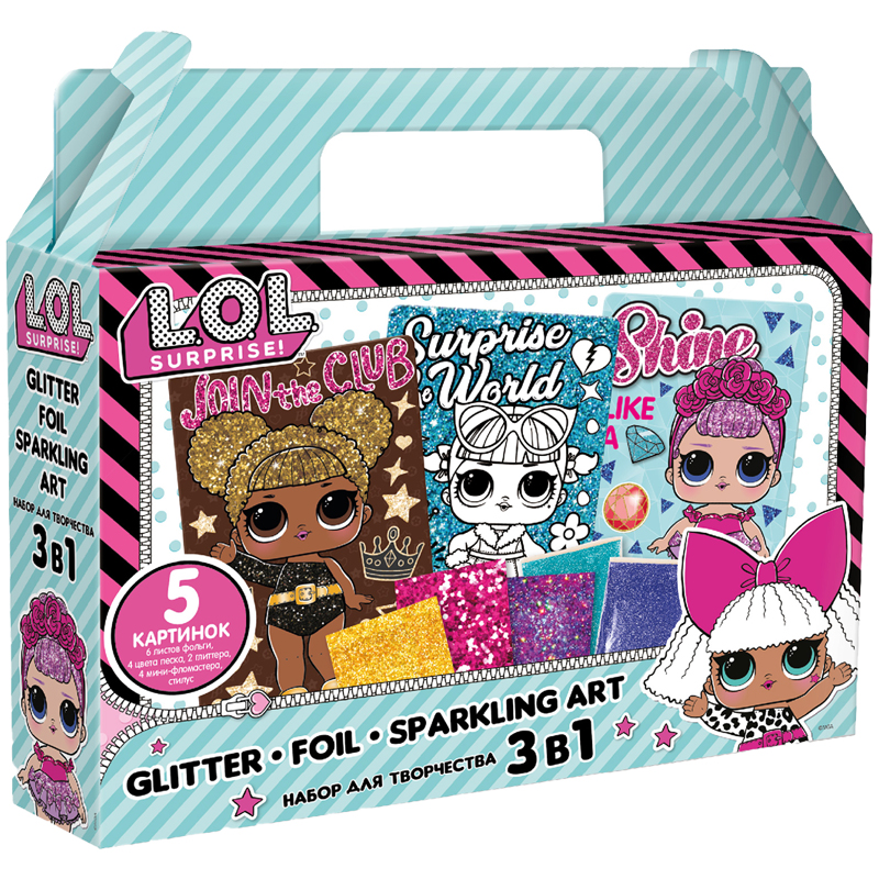 Набор 3в1 - это прекрасный подарок для девочки. Ребенку для развития необходимо творческое самовыражение и мы создали набор с двумя видами аппликаций и раскраской, в наборе 5 картинок, переливающаяся фольга, искрящийся песок и глиттер, фломастеры и стилус. Яркие картинки увлекут ребенка в мир любимых героев. Занимаясь творчеством, ребенок учится сочетать цвета, у него развивается чувство вкуса. Происходит тренировка самоконтроля, усидчивости, концентрации, внимательности, активизируется мышление и мелкая моторика. Девочка с удовольствием будет создавать любимых персонажей, проявляя свое воображение и художественные способности. Набор для творчества 3в1 упакован в чемоданчик, идеален и как подарок, и как вариант активити для ребенка в длительном путешествии. 5 картинок 14*21 см, набор страз, набор фольги (6 цветов), набор песка (4 пакетика) + глиттер (2 пакетика), карандаш-стилус, стилус д/фольги, тарелочка, мольберт Купите товар «Набор для творчества 3в1 LOL surprise, глиттер, 2 аппликации, раскраска, песок, фольга (LH0001)» по оптовой цене с доставкой или самовывозом.