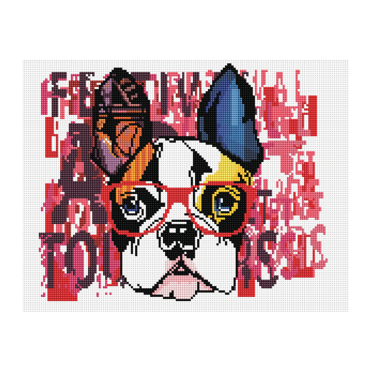 Алмазная мозаика ТРИ СОВЫ Стильный бульдог , 30*40см, холст, картонная коробка с пластиковой ручкой (АМ3040_47541)