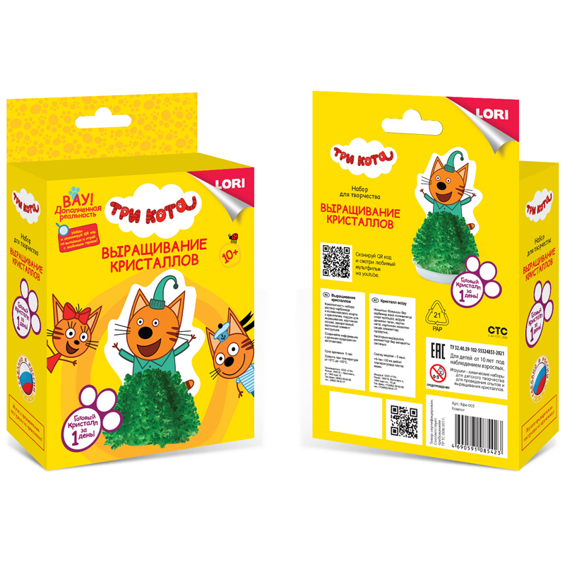 Набор для выращивания кристаллов Lori Три кота. Компот , картонная коробка (Кфк-003)описаниеНабор для выращивания кристаллов «Три кота» — увлекательное занятие с любимыми героями мультфильма. Химический опыт несложно провести, все необходимые комплектующие и реактивы уже входят в набор. Достаточно следовать инструкции, и кристалл начнет расти в этот же день. Благодаря набору ребенок сможет получить знания о том, как протекает химическая реакция кристаллизации веществ. Сумма заказа всех товаров с этого склада должна быть не менее 3000 р. Доставка от 4 дней