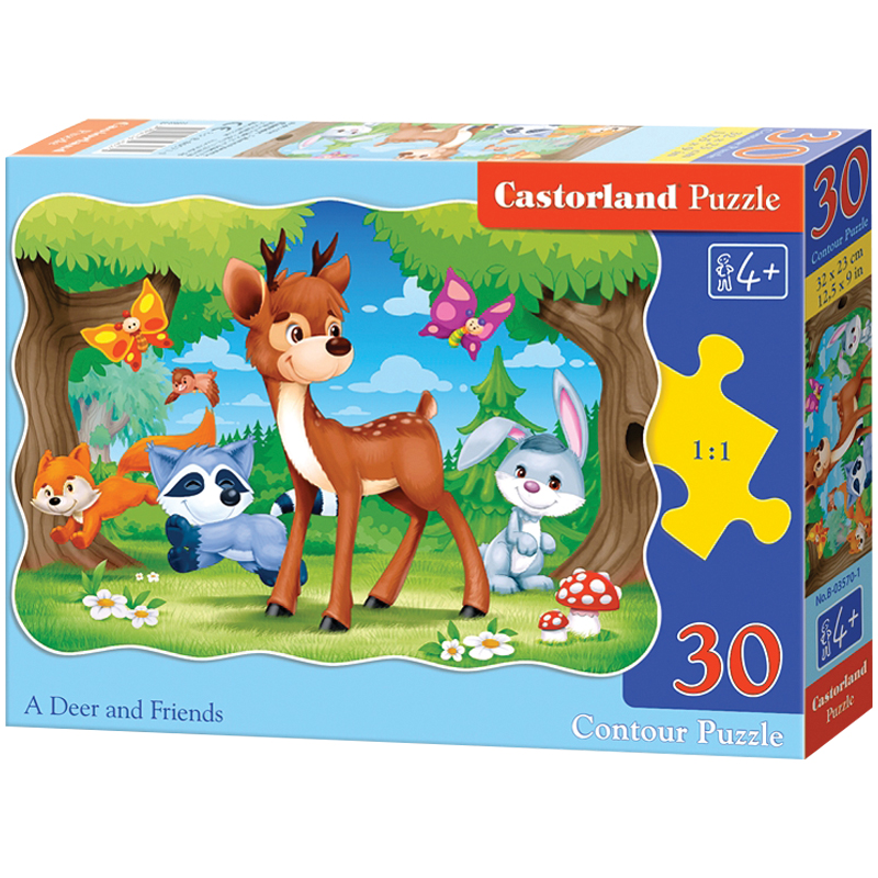 Пазл 30 эл. Castorlаnd MIDI Олененок с друзьями , контурный (В-03570)описаниеКонтурный пазл Олененок с друзьями , состоит из 30 крупных элементов. Сборка пазла не вызовет трудностей у ребенка, а красочная картинка привлечет внимание. Собирание пазлов для детей это не только интересно, но и полезно: ведь в процессе создания картинки ребенок развивает мелкую моторику, тренирует наблюдательность, логическое мышление, знакомится с окружающим миром, с цветом и разнообразными формами. Боковые замки ровные, соответствуют друг другу. Размер собранной картинки: 32*23 см. Сумма заказа всех товаров с этого склада должна быть не менее 3000 р. Доставка от 4 дней