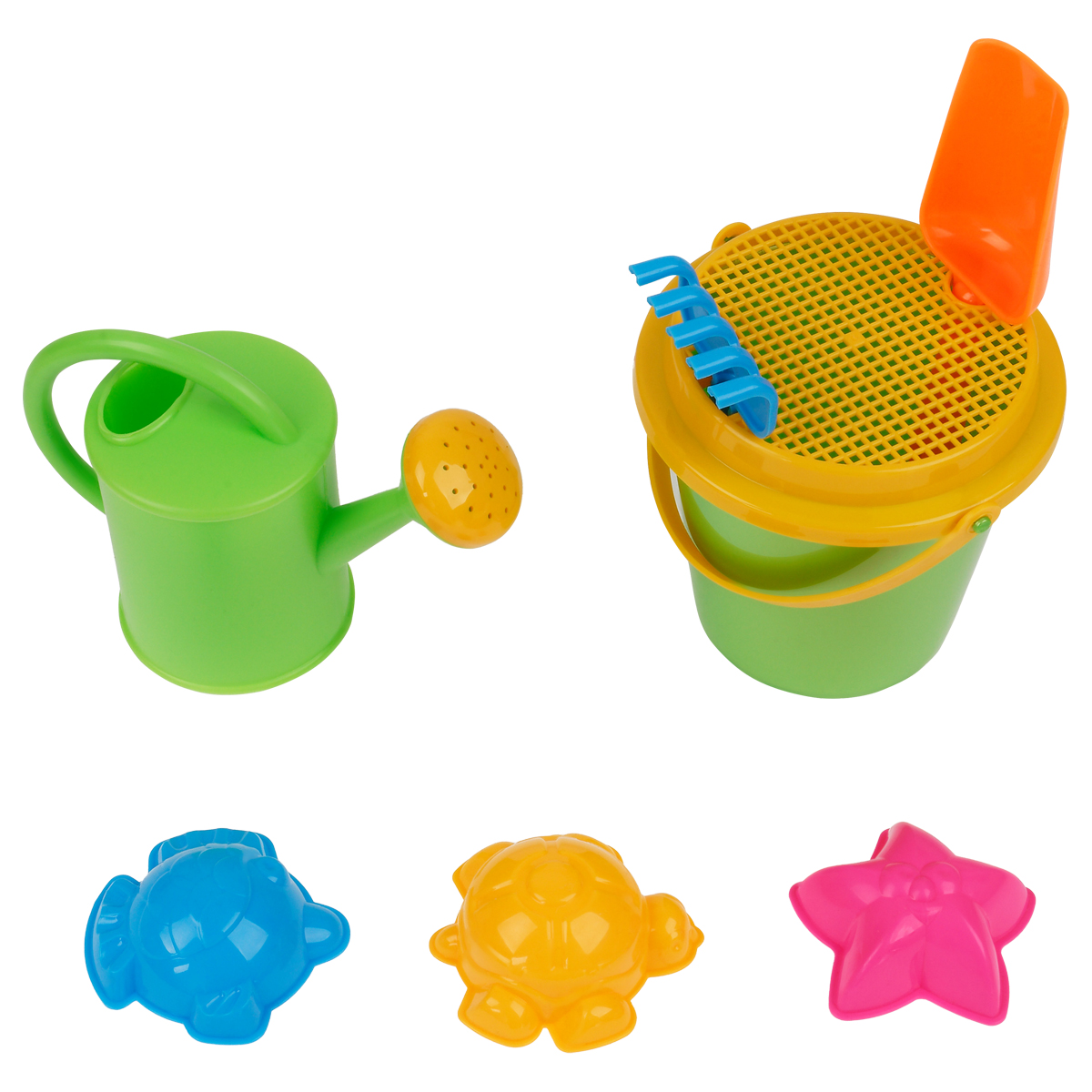 Набор для песка ТРИ СОВЫ Морской , 8 предметов (ведро, лейка, сито, грабли, совок, 3 формочки) (ПИО 008)