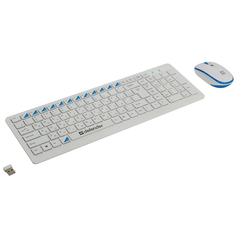 Комплект беспроводной клавиатура + мышь Defender Skyline 895 , белый (45895)описаниеУльтраплоские клавиши. Разделенные ультраплоские клавиши высотой всего 2 мм. Симметричная обтекаемая форма удобна для работы любой рукой. 12 дополнительных функций (Активируются клавишей FN).