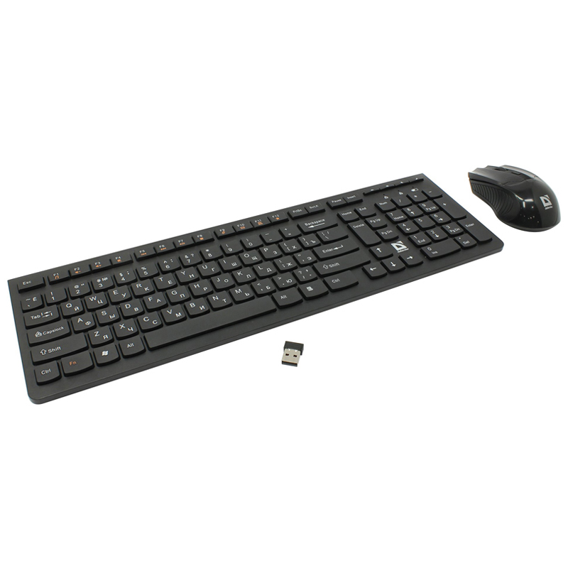 Комплект беспроводной клавиатура + мышь Defender Columbia C-775 , черный (45775)описаниеРазделенные клавиши высотой всего 2 мм. Удобные закругленные клавиши островного типа обеспечивают точную тактильную отдачу. 4 клавиши управления мультимедиа.