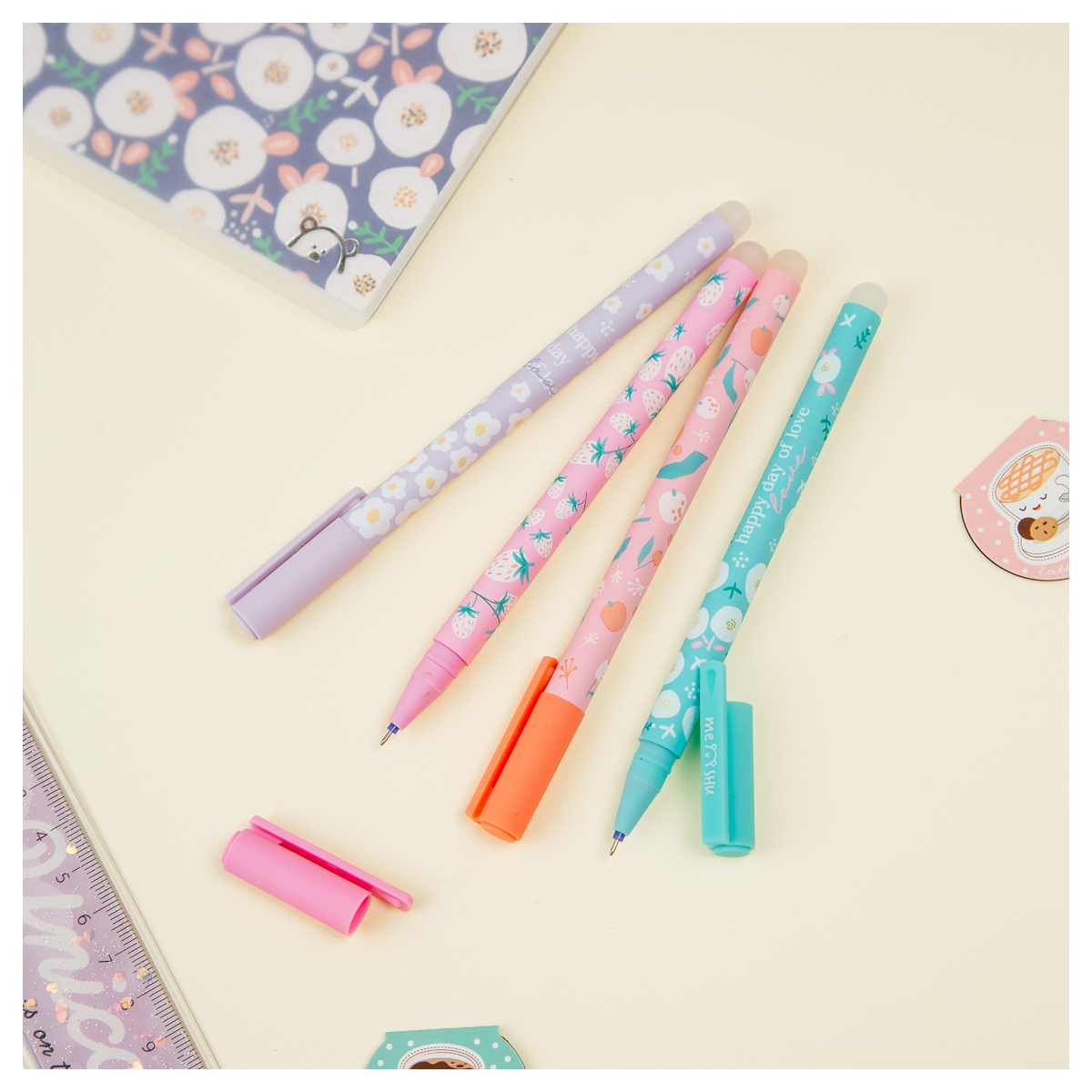 Ручка гелевая стираемая MESHU Juicy cats синяя, 0,5мм, корпус ассорти, софт-тач (MS_54001)описаниеГелевая ручка MESHU – это яркий дизайн с уникальными стираемыми чернилами внутри. Диаметр игольчатого пишущего узла – 0,5 мм, благодаря чему получается тонкая и аккуратная линия. Длина сменного стержня 129 мм. Гелевые чернила синего цвета не только ярко пишут на бумаге, но и при воздействии температуры становятся невидимыми. Достаточно потереть написанное ластиком на кончике ручки. Обесцвеченные чернила проявляются при низкой температуре. Благодаря колпачку с клипом можно закрепить ручку на одеж ... [Подробнее на странице товара]Сумма заказа всех товаров с этого склада должна быть не менее 3000 р. Доставка от 4 дней