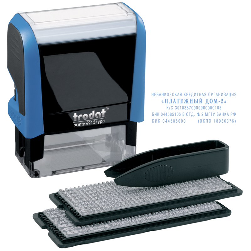 Штамп самонаборный Trodat, 5стр., 2 кассы, пластик, 58*22мм (43216) (4913/DB)описание4913 P3/DB – 5-строчный самонаборный штамп. В комплект входит пинцет, 2 кассы букв, цифр и символов 6005 и 6006. Максимальное количество знаков в строке основного шрифта – 35 для выделения текста – 23. Сумма заказа всех товаров с этого склада должна быть не менее 3000 р. Доставка от 4 дней