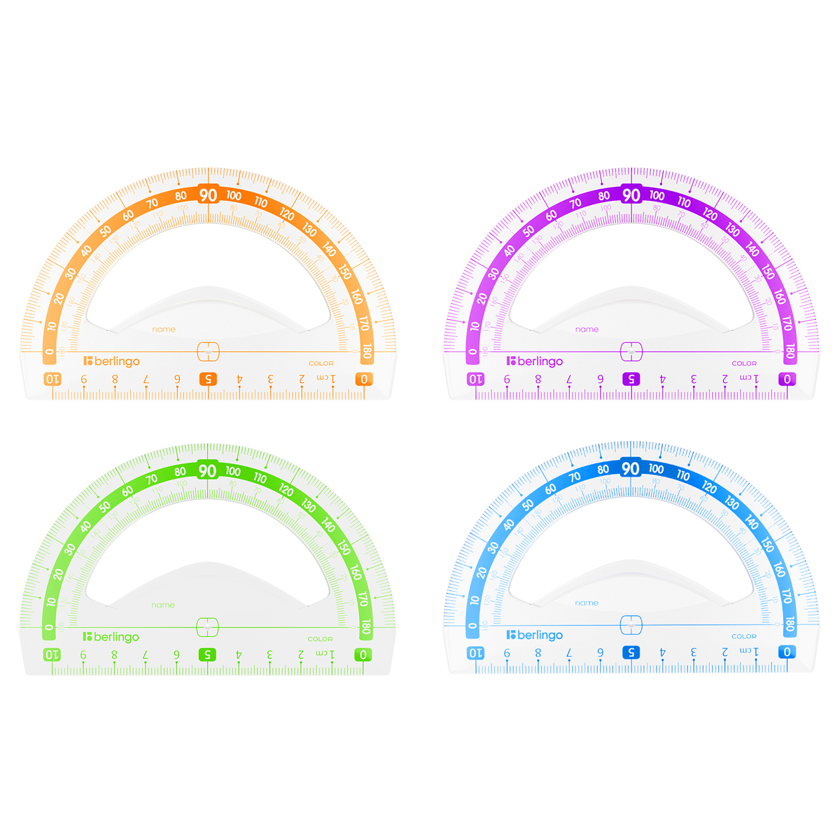 Транспортир 10см, 180° Berlingo Flexy , пластиковый, гибкий, ассорти, европодвес (PT_10010)описаниеТранспортир пластиковый, 10 см, 180°, гибкий, ударопрочный, высококачественная градуировка с использованием УФ-чернил. Цвета ассорти. Индивидуальная упаковка в пакет с европодвесом. Сумма заказа всех товаров с этого склада должна быть не менее 3000 р. Доставка от 4 дней