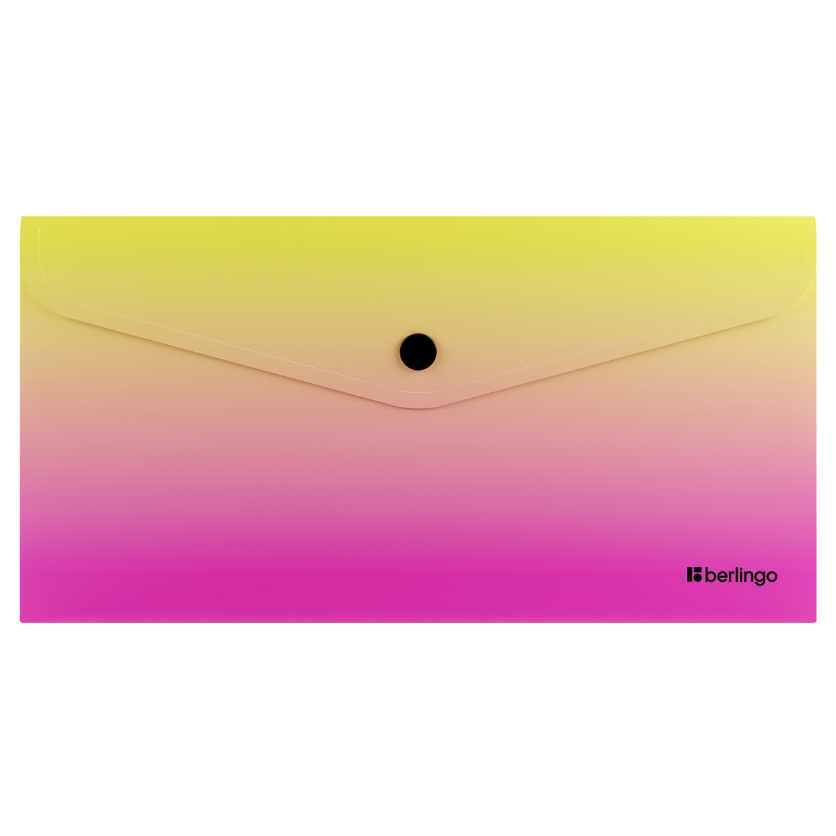 Папка плотно закрывается на кнопку и вмещает до 120 листов. Упаковка в пакет по 4 шт. Индивидуальный штрих-код на каждой папке-конверте. Купите товар «Папка-конверт на кнопке Berlingo Radiance , Travel size, 180мкм, желтый/розовый градиент (EFb_TS001)» по оптовой цене с доставкой или самовывозом.