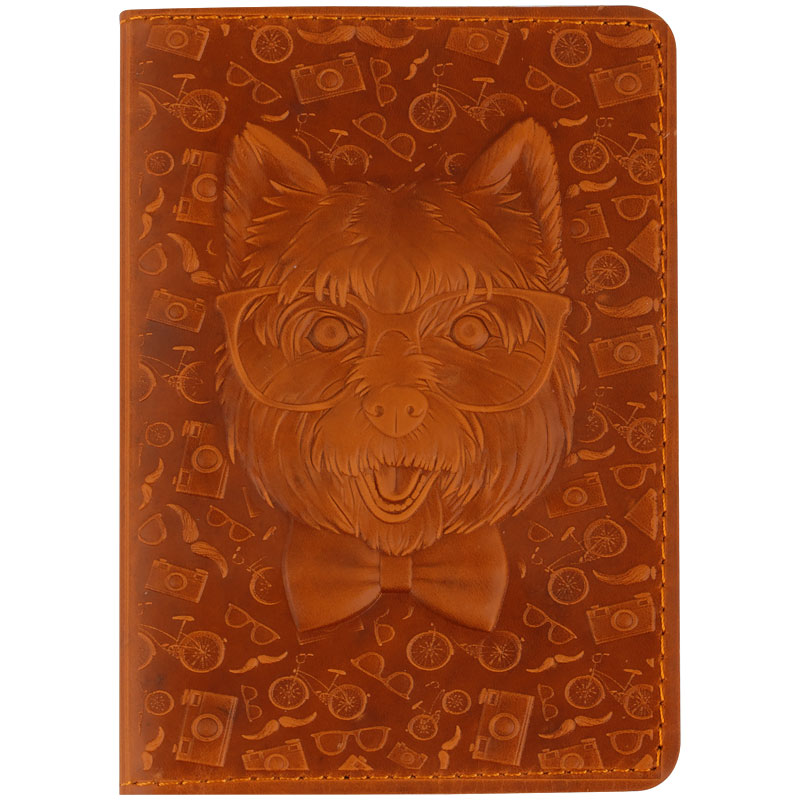 Обложка для паспорта Кожевенная мануфактура, нат. кожа, Пес в очках , коричневый (Оbl_11131)