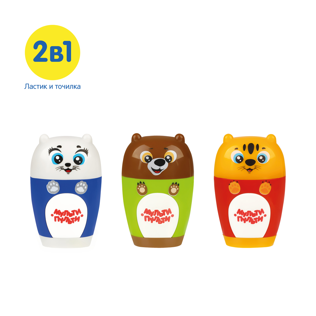 Точилка пластиковая с ластиком Мульти-Пульти Зверята 1 отверстие, контейнер, ассорти (SR_48485)