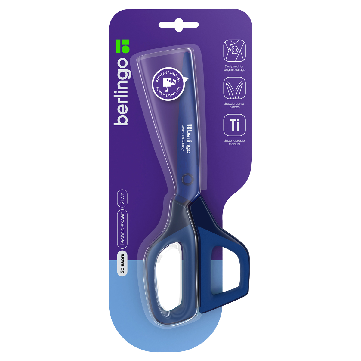 Ножницы Berlingo Technic Expert" подходят для работы с бумагой и картоном. Размер ножниц 21 см. Лезвия изготовлены из нержавеющей стали c титановым покрытием синего цвета. Особая заточка лезвий делает их в три раза острее аналогов. Удобные пластиковые ручки эргономичной формы выполнены с технологией двойного литья, что делает их более прочными и надежными. Индивидуальная упаковка - блистер с европодвесом. Цвет - синий. Купите товар «Ножницы Berlingo Technic Expert , 21см, синие, лезвия с титановым покрытием, эргономичные ручки, мягкие вставки, европодвес (DNn_21005)» по оптовой цене с доставкой или самовывозом.